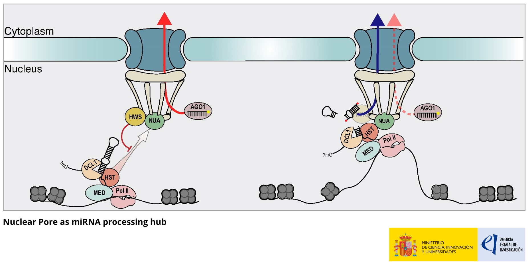 Las plantas usan el poro nuclear como centro de control en la biogenesis de pequeños ARNs reguladores