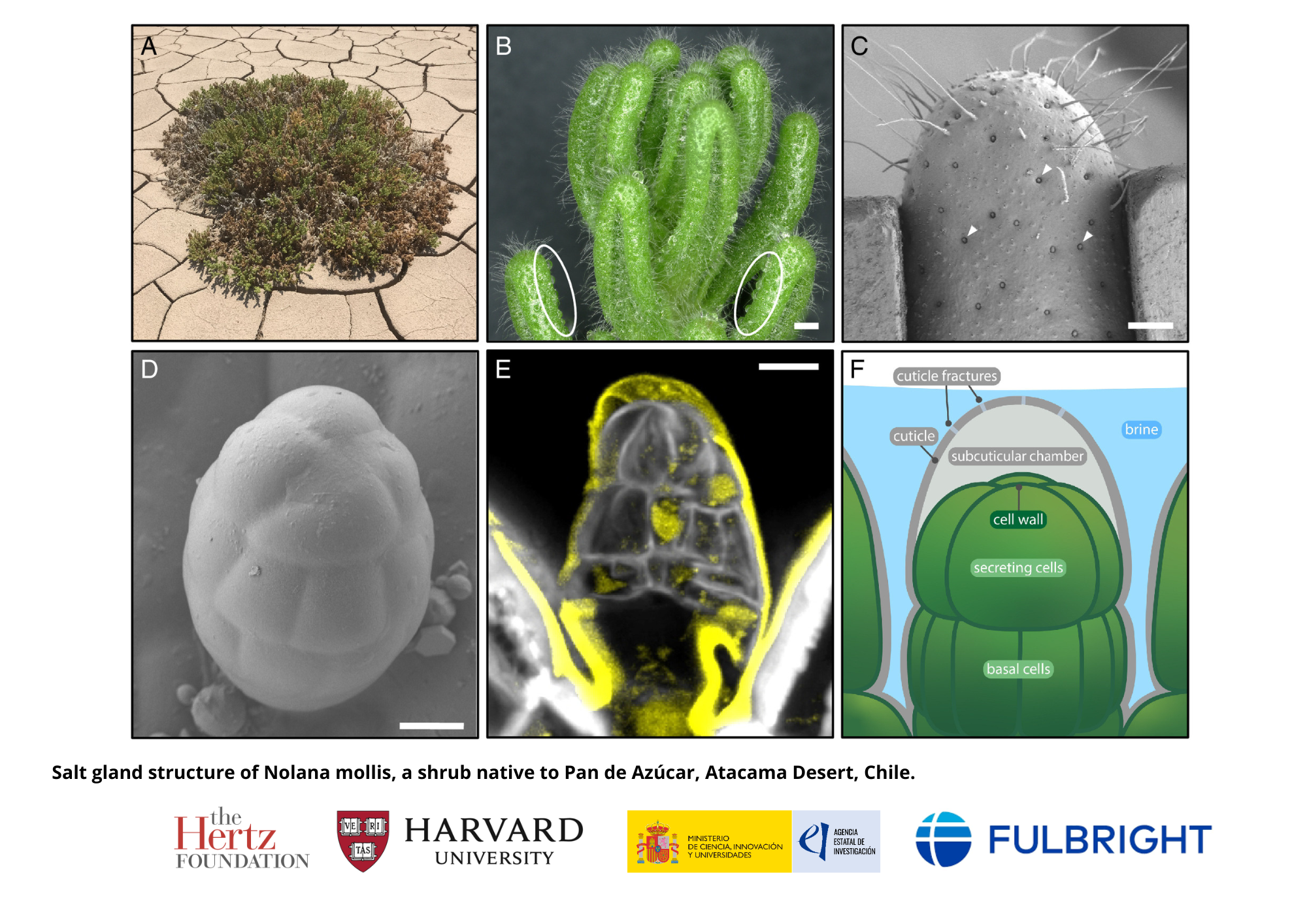 ¿Cómo logran sobrevivir las plantas en los lugares más salinos del planeta? Un equipo internacional liderado desde la Universidad de Harvard, con la colaboración del científico del IHSM La Mayora (CSIC-UMA) Juan M. Losada, ha descubierto el mecanismo que permite a ciertas plantas del desierto de Atacama (Chile) eliminar el exceso de sal y sobrevivir en condiciones extremas. El estudio, publicado en la revista PNAS, revela que estas plantas utilizan unas diminutas estructuras llamadas glándulas salinas, que funcionan como auténticas “microcámaras de presión”. Gracias a ellas, las plantas bombean activamente las sales hacia el exterior y las expulsan a través de nanoporos en la cutícula —la fina película que recubre sus hojas—. El equipo ha comprobado que la regulación precisa del tamaño de esos nanoporos es clave para mantener el equilibrio entre eliminar la sal y conservar la humedad. Si los poros se abren demasiado, la planta se deseca; si se cierran, la sal se acumula y la planta muere. Según Losada, este trabajo “sienta las bases para comprender cómo las plantas adaptadas a ambientes extremos pueden inspirar nuevas estrategias para recuperar suelos agrícolas salinizados o incluso para diseñar sistemas de desalinización más eficientes”. El estudio combina análisis anatómicos, fisiológicos y teóricos, y representa un paso importante hacia la agricultura regenerativa en un contexto de cambio climático y creciente escasez de agua dulce.