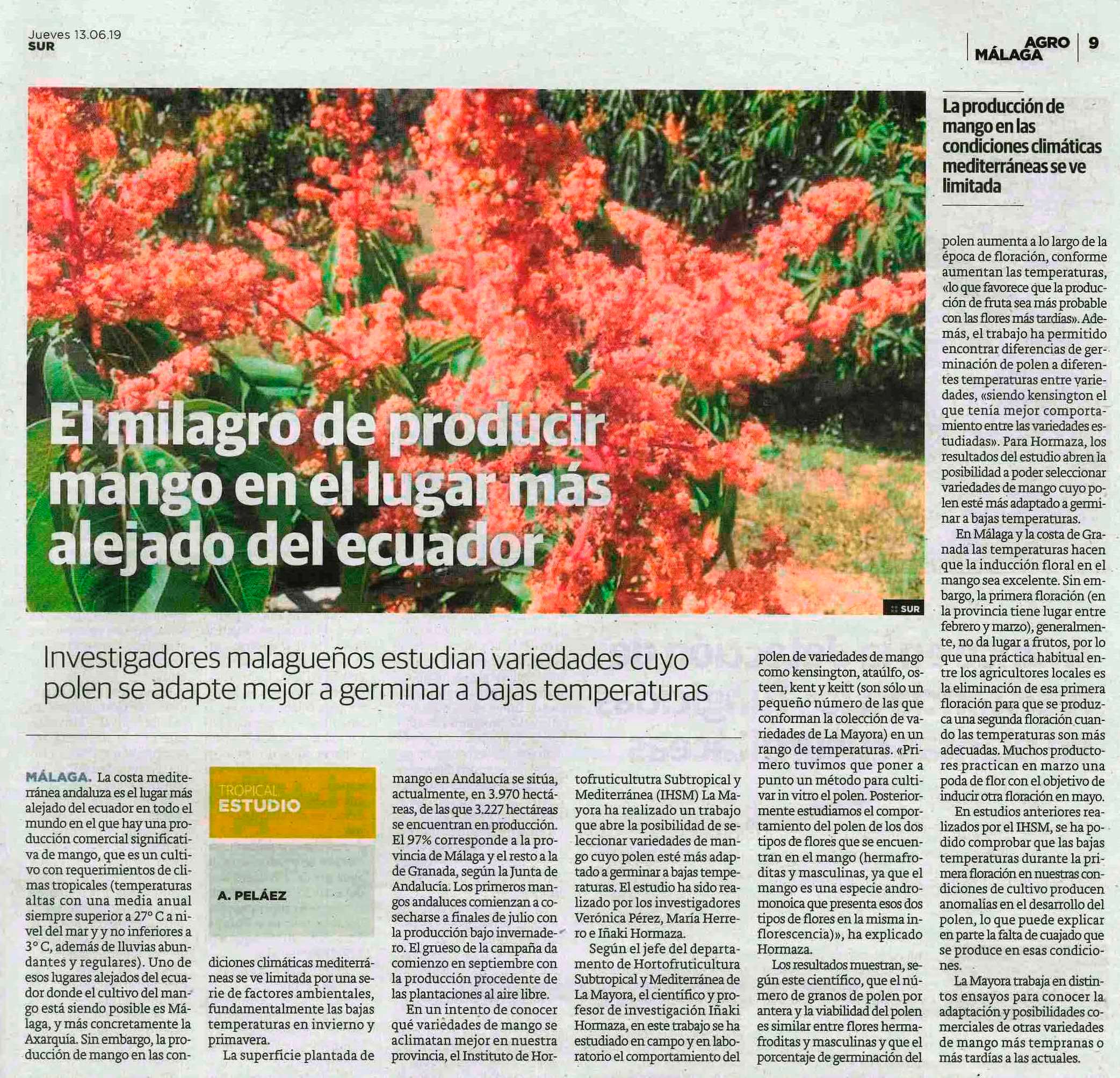 En La Mayora se trabaja con distintas variedades de mango, más tardías o más tempranas, para conocer su adaptación y sus posibilidades comerciales.